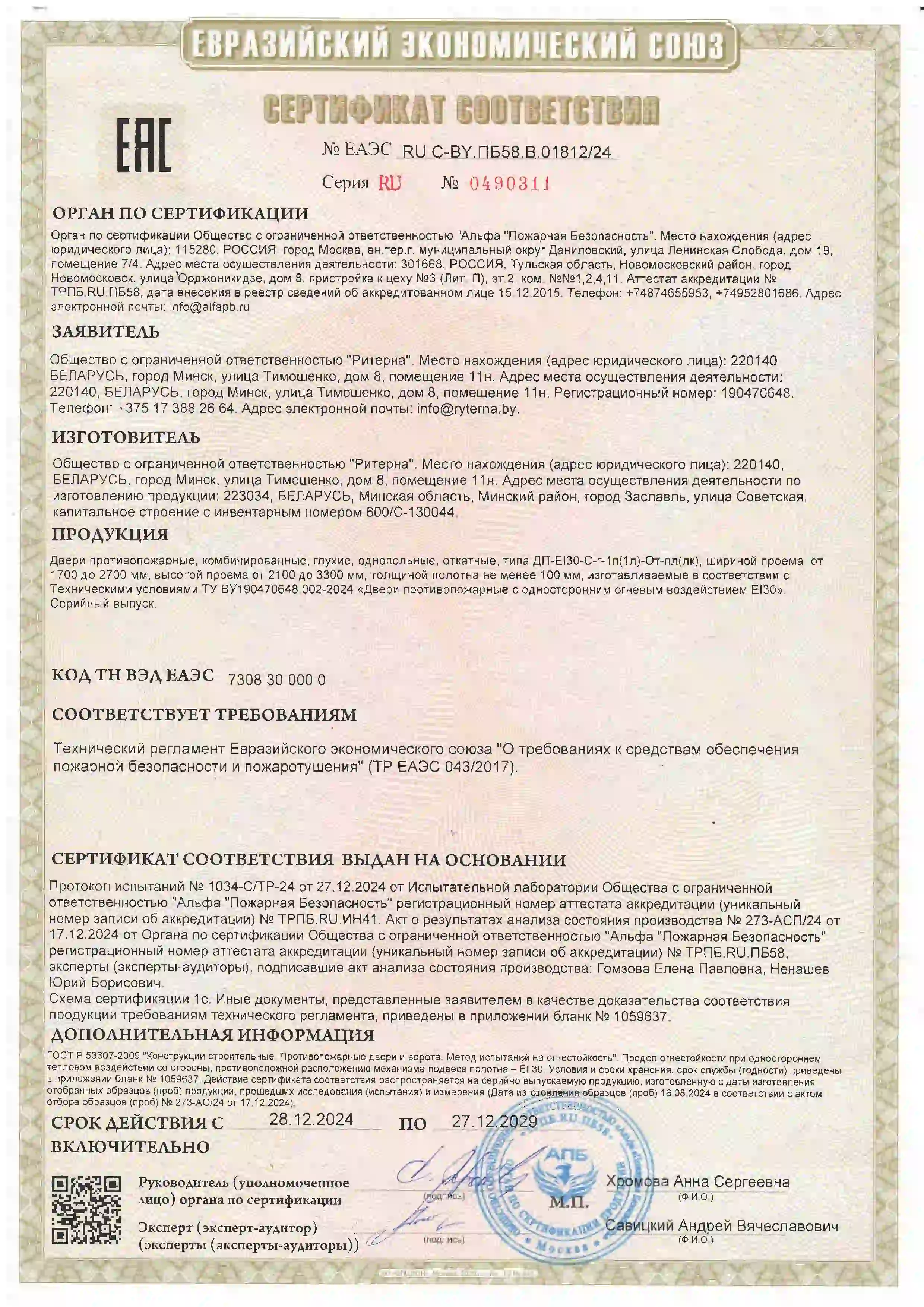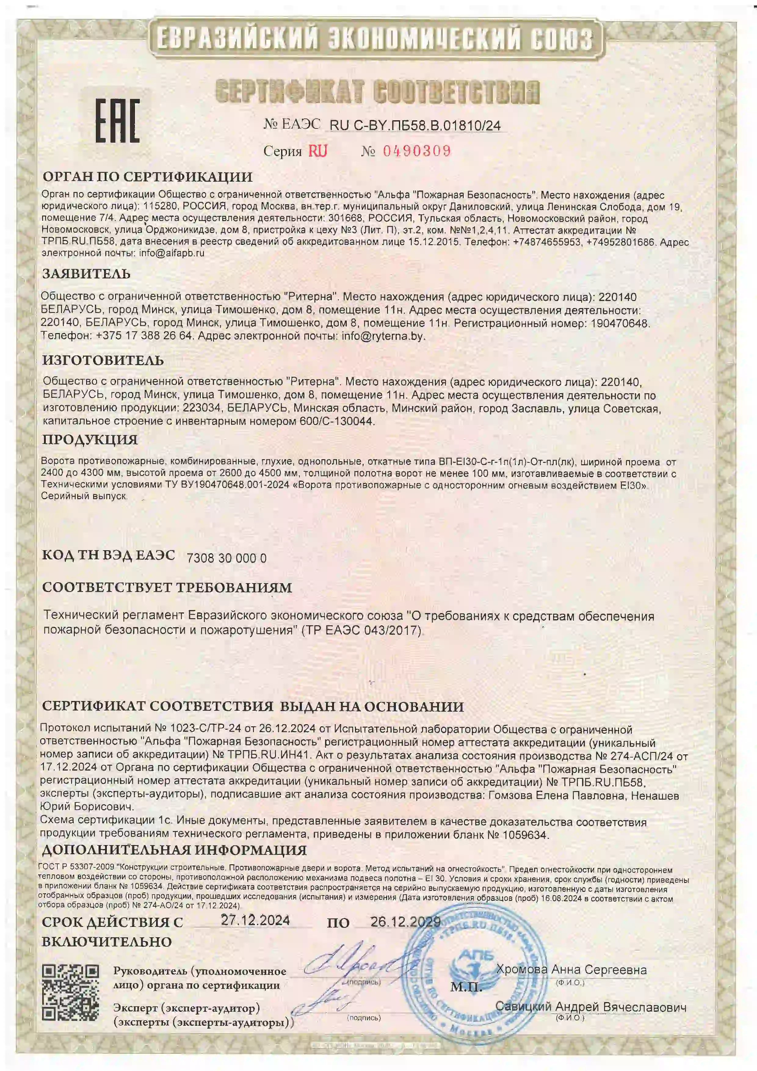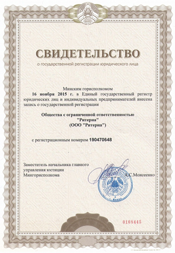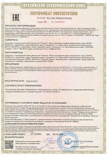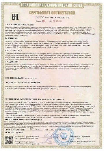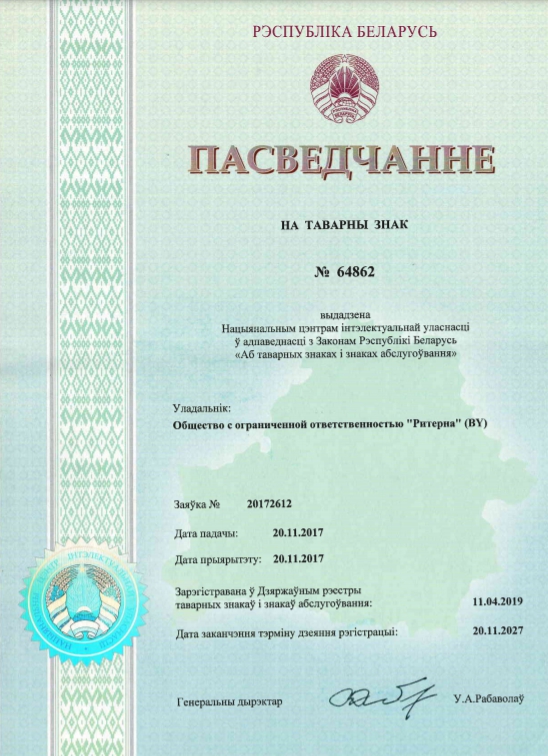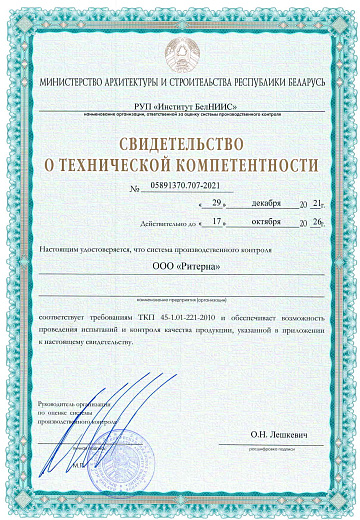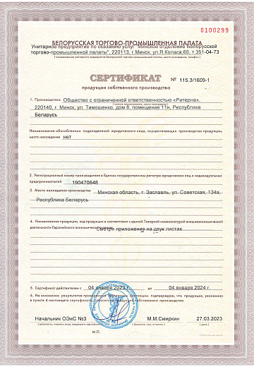 ООО «Ритерна» регулярно проходит процедуры сертификации, что гарантирует стабильное качество, надежность и соответствие продукции заявленным характеристикам.