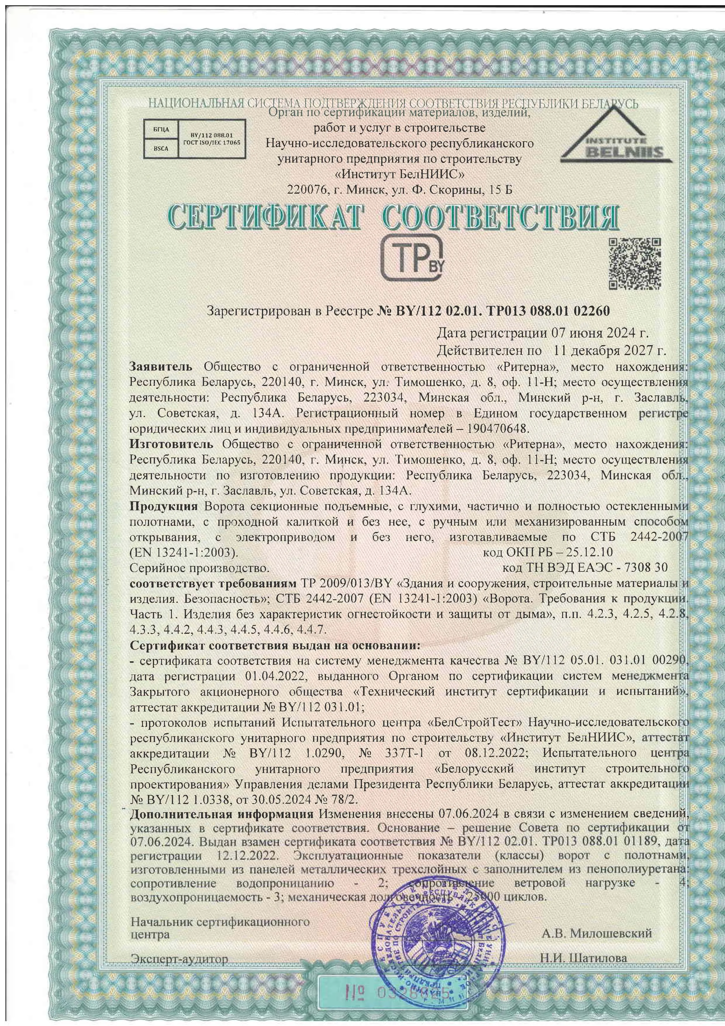 Сертификаты и свидетельства действительны на территории Республики Беларусь и других стран в соответствии с областью их применения.